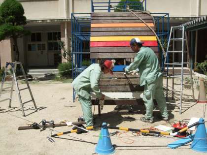 管理作業員さんがカラフルな板に張り替えてくださました。