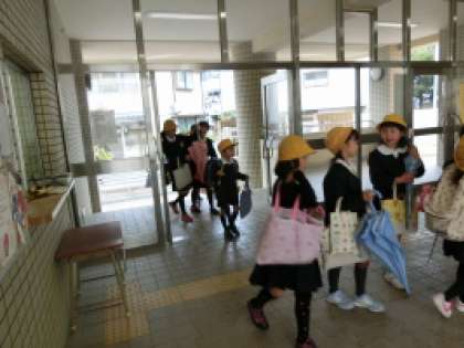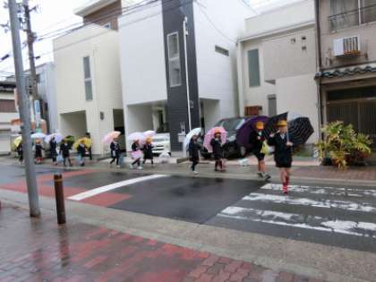 あいにく朝から雨がふっていましたが、子どもたちは元気に登校して来ました。