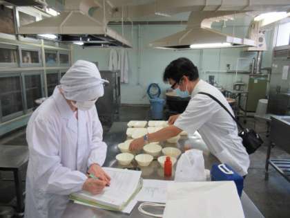 8月30日、学校薬剤師の佐々木先生に教室の換気の様子の確認と、給食の自主管理の話し合いに入っていただき、ご指導をいただきました。