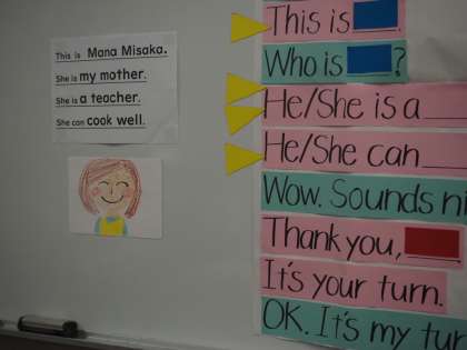 今日の英語の学習は、身近な人物の紹介「show and tell」です。
