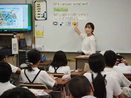 小学校の外国語は、読んだり書いたりすることに慣れ親しみ、聞く、読む、話す、書くことによる実際のコミュニケーションにおいて活用できるための基礎的な技能を身に付けることを大切にしています。