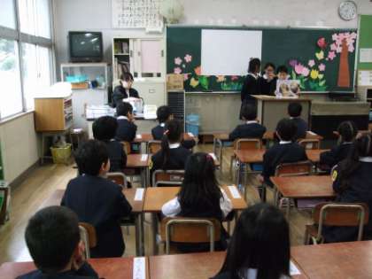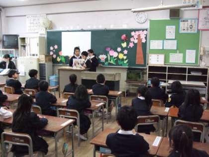 1年生の教室をのぞいてみると、みんな静かに紙芝居の世界にひたっていました。