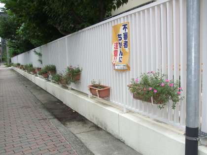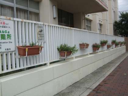 夏のあいだ厳しい日差しを避けていたプランターが、PTAの方々の手によって
