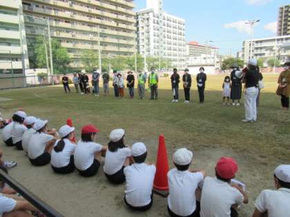 作業は、校庭緑化委員会の地域の方に来ていただき、6年生児童と6年生の保護者の方と一緒に行っています。