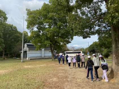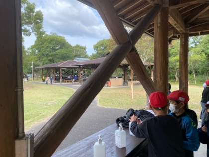 無事に信太山のキャンプサイトに到着しました。しっかりバスの運転手の方にお礼を言っている児童が多くいました。