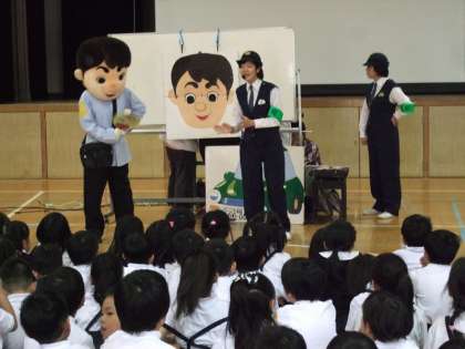子ども達が興味関心をもてるよう着ぐるみや腹話術・VTRの視聴