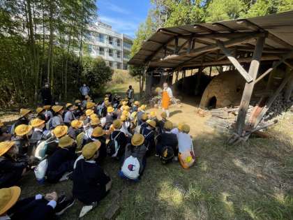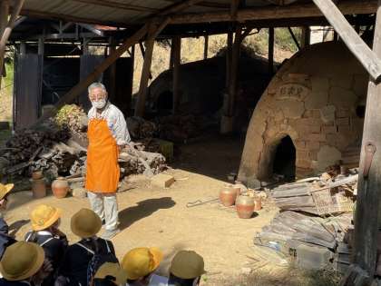 信楽焼きを作り終え、登り窯の見学です。登り窯の使い方や信楽焼きの歴史について教えて頂きました。