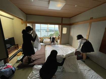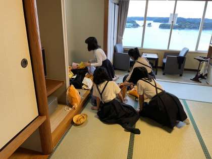 ドアを開けると、どの部屋も布団を協力してたたみ、朝の準備を率先して行っていました!さすが6年生!!