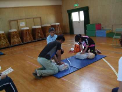 胸部圧迫の方法や、AEDの使い方を教えていただきました。緊急の事態に備えることや勇気を持って行動することが、一つの命を救うことにつながるということを強くおっしゃっていました。