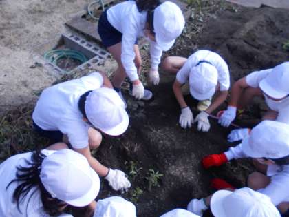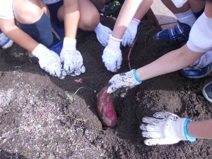 19日(金)に、おいもパーティーを行います。それに向けて、学習園で育てたさつまいもを収穫しました。