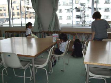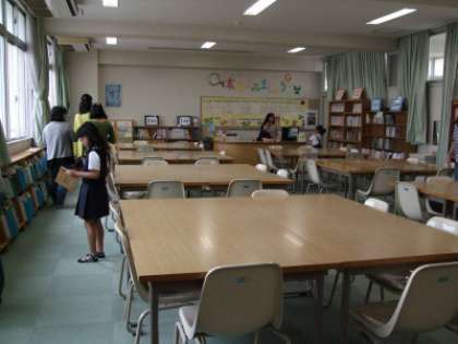 きょうは、昼休みの図書館開放をしていただきました。関目小学校の