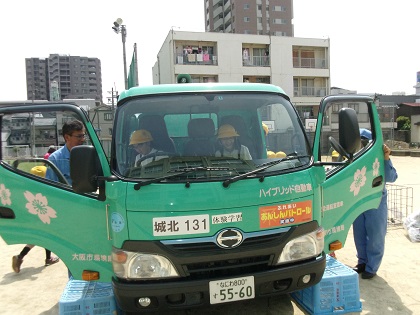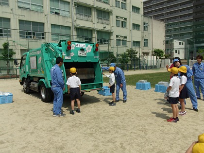 まず2限目にパッカー車体験をしました。ごみ収集をしたりパッカー車に乗ったり、普段体験できないことをさせていただきました。