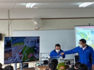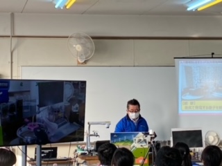 児童は、水力発電所・火力発電所・原子力発電所の特徴やしくみなどの説明を、集中してモニターや実験の様子を通して聞いていました。