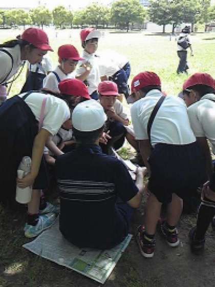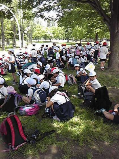 1時間少しの活動ですが、清々しい天気と緑溢れる木立の中、子どもたちはグループで協力しながら楽しく先生や保護者が待つポイントを歩いて回り、ゴールを目指しています。