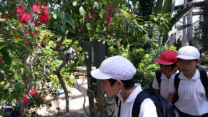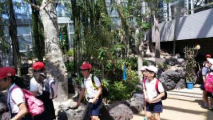 午後からは、午前中に比べて暑さが増す中、5・6年生は『咲くやこの花館』に出かけました。