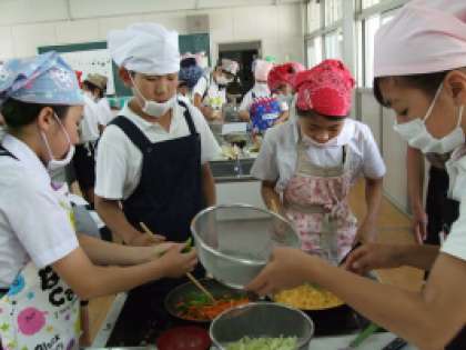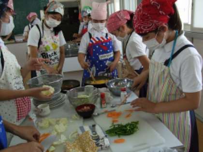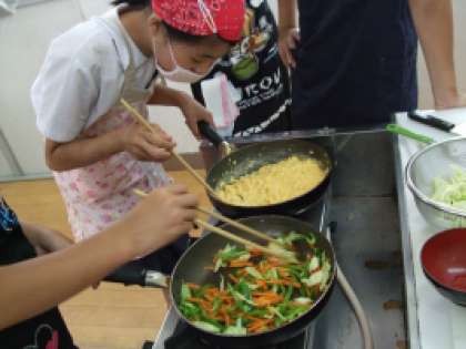 きょうは、三色野菜炒めとスクランブルエッグの実習をしました。