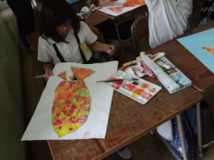 水彩絵の具を使って「おしゃれなさかな」を仕上げました。
