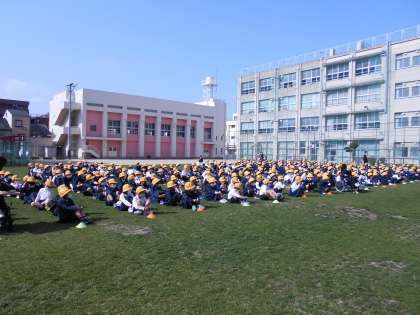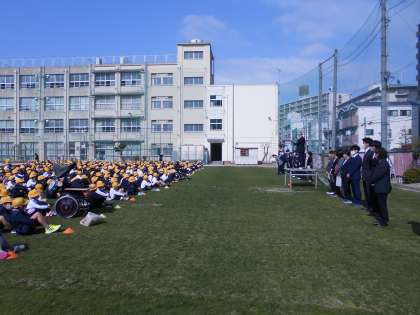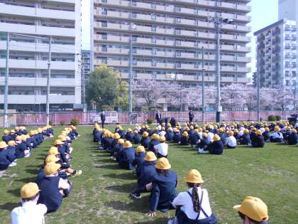 暖かな春の日差しの中、関目小学校の子どもたちは、進級の喜びと新年度への期待を胸に、登校してきました。