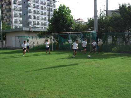 始業前に運動場に出て遊ぶ子ども達の横を、
