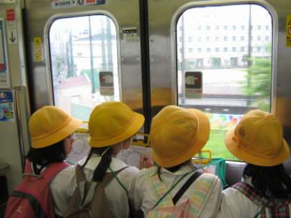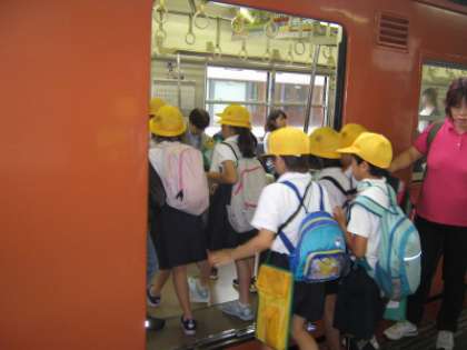 通過する町並みからいろいろな発見を児童たちはすることができました。京セラドームや通天閣、あべのハルカス、大阪城などの知っている施設を見つけたときには思わず小さい声で友だちに教え合う姿も見られました。