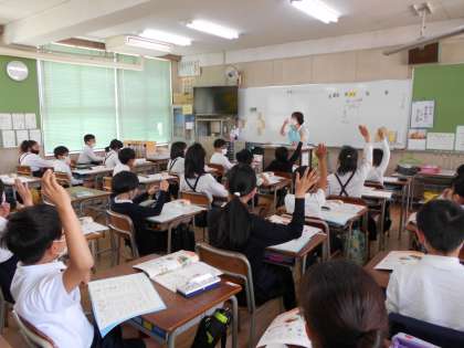 5年生は、調理実習で「ゆで卵を作る」「お茶を飲む」を行います。