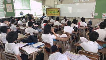また、校長先生からは、「関目小学校の子どもたちはステキな子どもたちです。とってもうれしいです。みんなで、関目小学校をいじめのない、やさしい気持ちがいっぱい溢れるステキな学校にしましょう!」とお話され、子どもたちを応援されていました。