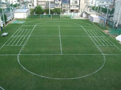 ラインも引き終わり、朝礼台も定位置に戻しました。