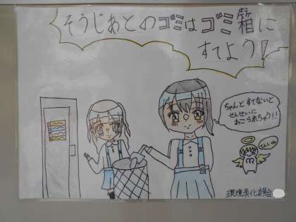 最後に、さらに掃除にがんばれるように、ポスターを作って。美しい学校づくりを目指す取組をしています。
