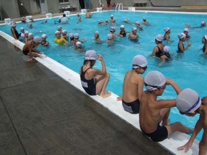 朝から強い日差しの中、今年度最後のプール水泳です。