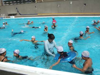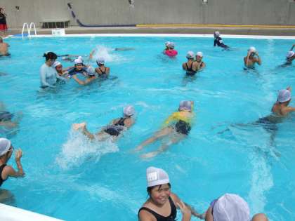 水慣れ・泳力別に練習をした後、自由水泳の時間のたっぷりとってもらい、