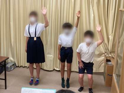 児童集会では、集会委員会による「船長さんの命令」ゲームをしました。