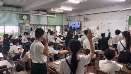 教室の児童はテレビの画面をよーーく見て、体を動かしていました。