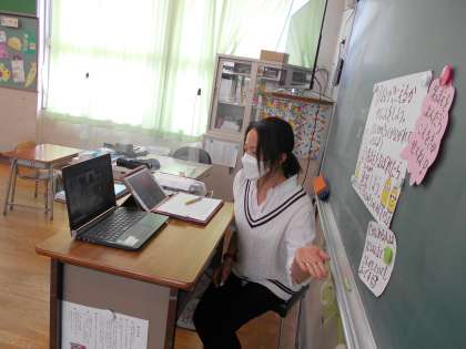 教室では画面越しに担任も楽しそうに子どもたちと話をしているのが印象的でした。