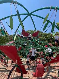 子どもの森では、いろいろなブランコや滑り台、大きなジャングルジムがあり、子どもたちが元気いっぱい遊ぶ姿が印象的でした。