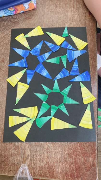 今日の図工では、サークルアートを作りました。