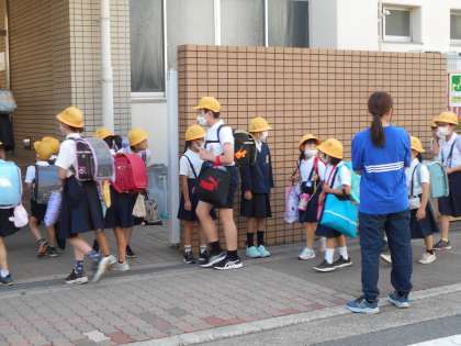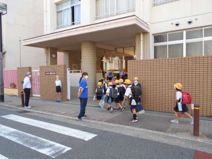 担当する児童は門の前に立ち、「おはようございます。」と、元気な声であいさつし、登校してきたときの朝いちばんのあいさつを呼びかけました。