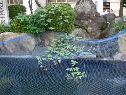 創立五十周年の記念に作られた池に鯉が三匹泳いでいます。