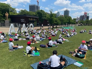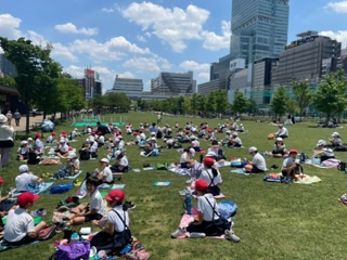 あべのハルカスから東西南北を眺め、たくさん調べ発見して学習に頑張ったあとのお弁当タイムは最高でした。