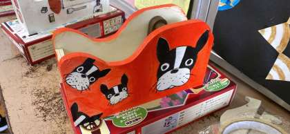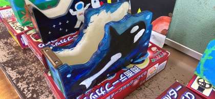 また、形を利用した絵や好きなものの絵を描いて、釘やねじを使って丈夫な世界で一つのテープカッターを作っています。