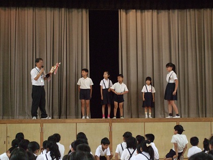 集会委員会による児童集会のあと、全校遠足のオリエンテーリングで上位3位チームが表彰されました!
