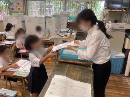 終業式が終わった後に、各学級で夏休みの宿題や通知表等が配られました。