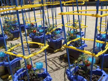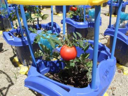2年生が育てているミニトマト「凜々子」が、赤く色づきはじめました。