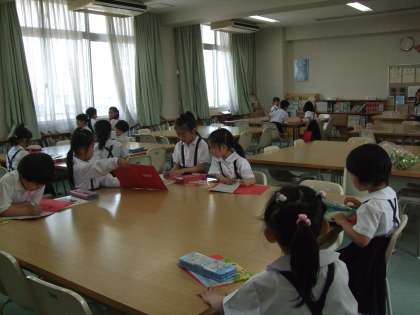 図書委員会では、毎週月曜日と水曜日に図書室を開放をしています。本を読みたい人や借りたい人が集まってきます。図書委員は、部屋の開け閉め・本の整理・低学年のお世話など忙しく活動しています。