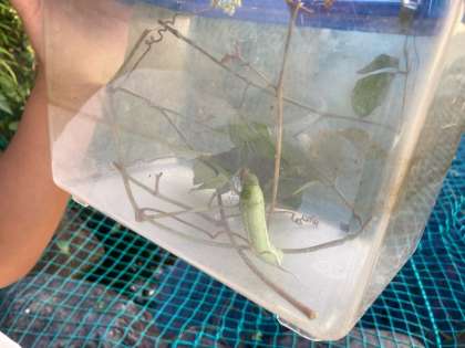 よ〜く見ると色々な場所でダンゴムシやバッタ、大きな幼虫等、たくさん生き物を見つけることができました。