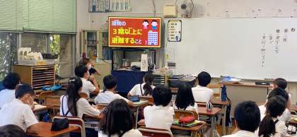 本日の児童朝会は、校長先生から、金曜日に実施した「880万人訓練」をふり返り、お話していただきました。