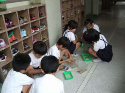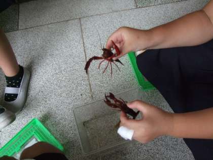 2年生は、ケースから出してザリガニを遊んであげていました。