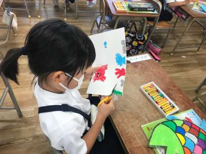 「こんな塗り方、初めて!」「たのしい!」と言って、楽しみながら色を塗っていました。