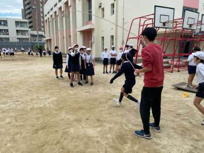 1年生から6年生まで、体育の授業や休み時間にたくさんの児童がなわとびを楽しんでいます。