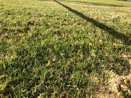 6日(木)の第1回オーバーシードで植えた冬芝が発芽しました。