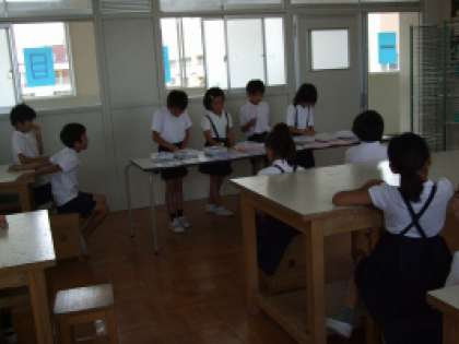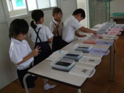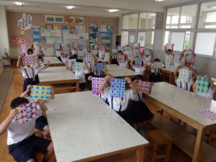 青・黄色・オレンジ・赤・緑などの色水に角々を浸して